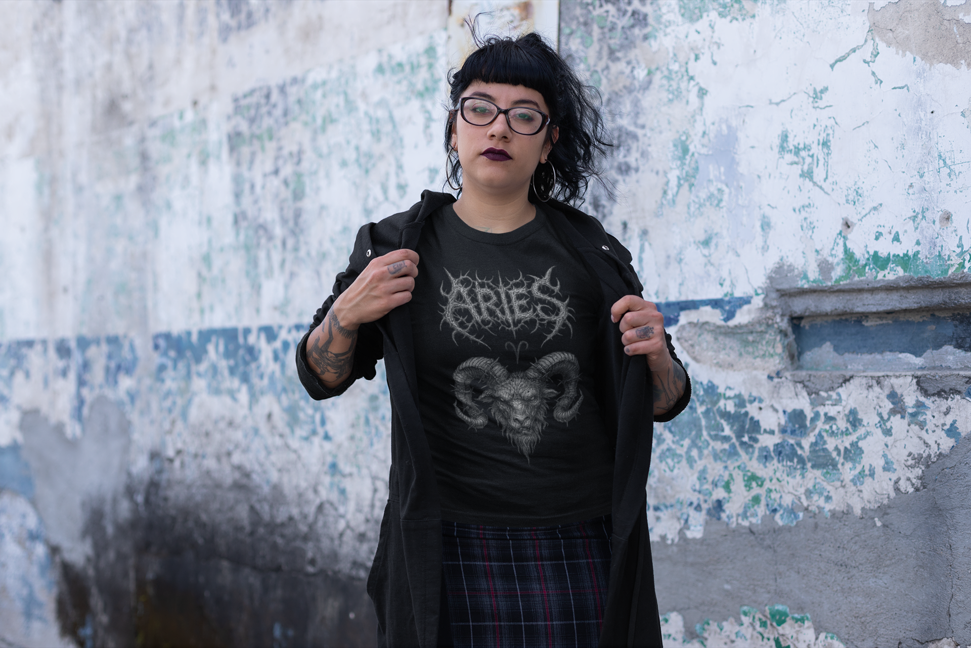 Set the world ablaze with the Aries Metal Shirt — a battle cry forged in fire, fury, and molten riffs. Featuring a horned ram skull and a title wreathed in throns and carved with the relentless spirit of Aries: bold, defiant, and born to lead the charge straight into the apocalypse.