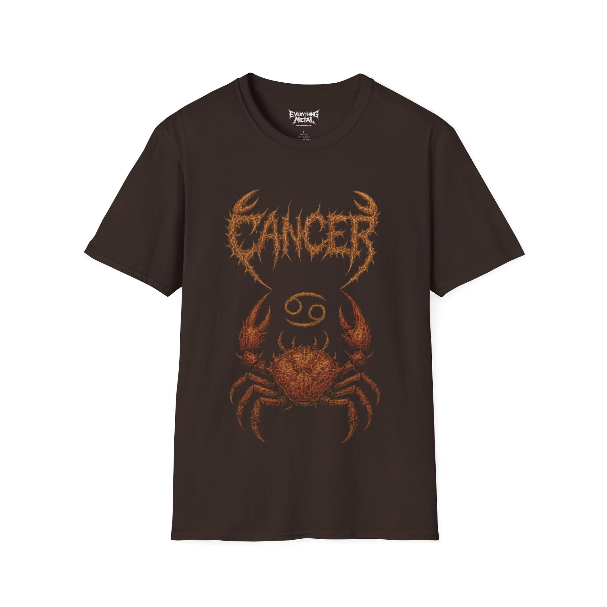 Rise from the depths with this Cancer-inspired death metal shirt featuring a monstrous undead crab clawing its way out of the abyss. Dripping with decay, this design fuses astrological symbolism with oceanic horror. Perfect for metalheads who channel emotion into destruction and thrive beneath the darkest tides. Printed on soft, durable cotton for comfort that survives even the roughest storms.