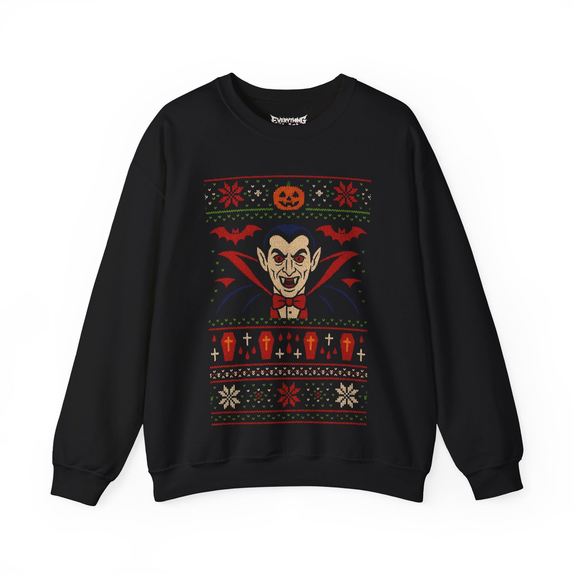 Sink your teeth into the holiday spirit with this Dracula Ugly Christmas Sweater! Featuring a classic vampire design framed by festive gothic patterns—bats, coffins, crosses, and jack-o’-lanterns—this cozy sweatshirt brings a touch of Transylvanian terror to your winter wardrobe. Perfect for horror fans, goths, and anyone who thinks Christmas could use more fangs and less cheer.
