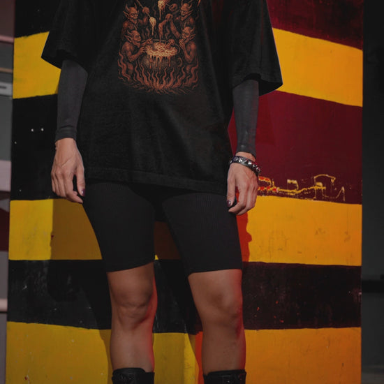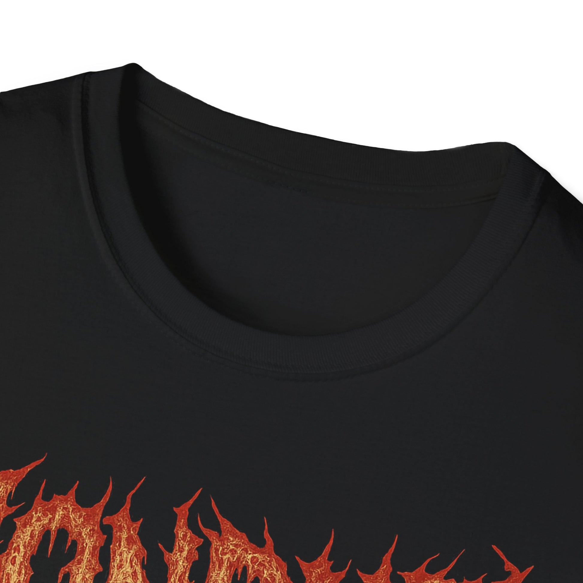 Plunge into the Pits of Cheese with this wickedly funny metal-style tee! The artwork shows a cabal of demons gleefully spearing chunks of meat on the bone shards of the fallen, dipping them into a bubbling cauldron of molten fondue. Rendered with the dark drama of a vintage death-metal album cover—complete with jagged fonts and tongue-in-cheek gore—this shirt is perfect for fans who crave riffs, cheese, and a dash of delicious destruction. Whether you’re melting faces at a show or just melting cheese at home, this tee brings brutal flavor to any outfit.