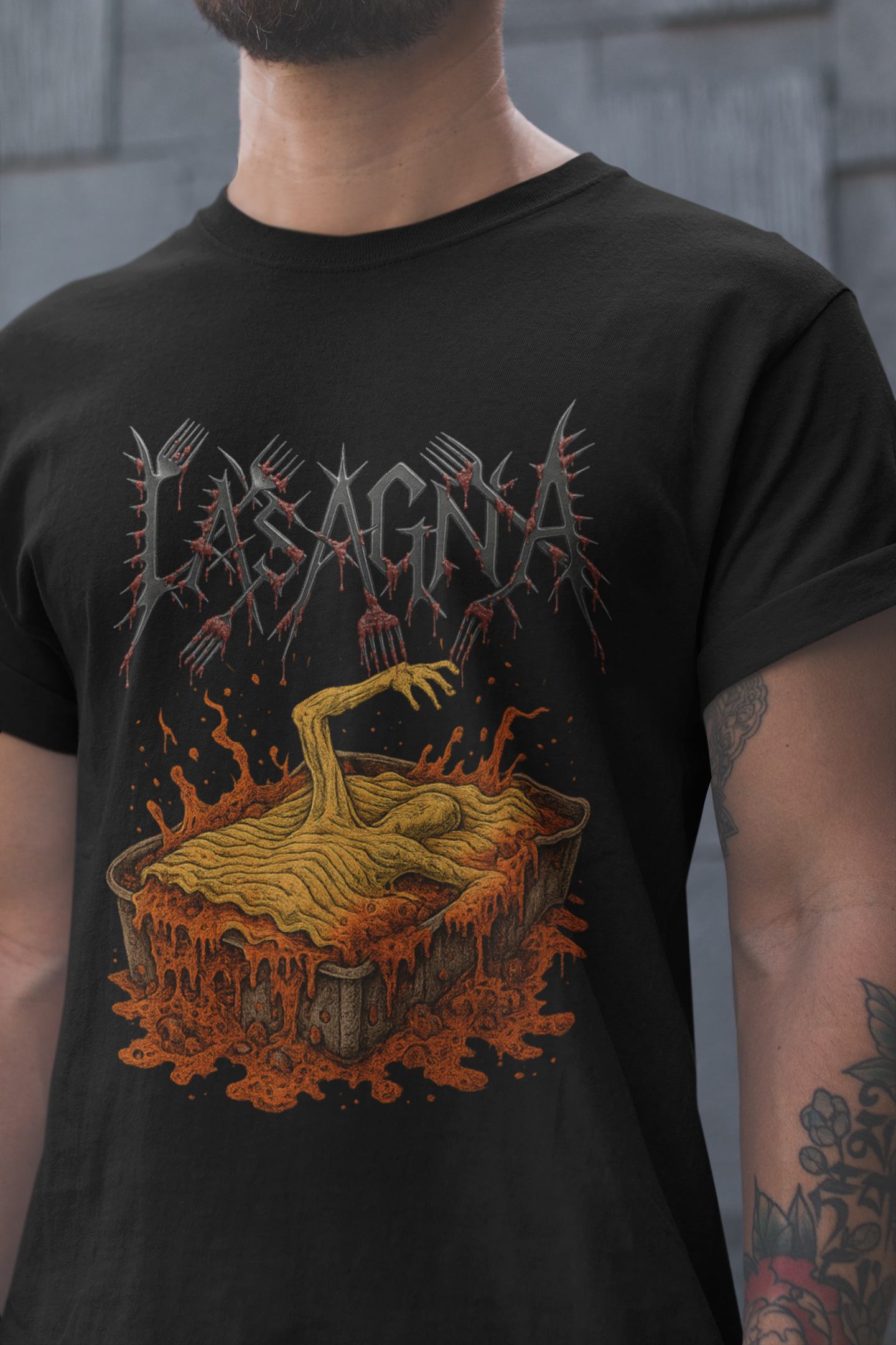 Longtime rival to SPAGHETTI after the infamous and tragic events of the HIGH ON CARBS tour of 2002 in which fans were left too lethargic to leave, causing the largest mass-induced food coma in concert history, LASAGNA is back to reclaim their title as the starchiest band on the planet. Show your support by buying at least 6 of them and layering them on as intended. Cheese between shirt layers is optional but I'm sure the internet can hook you up with a shirt made of cheese as well...