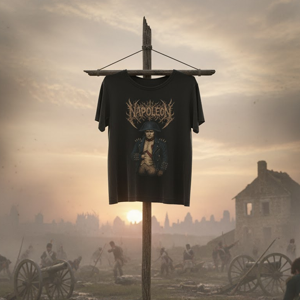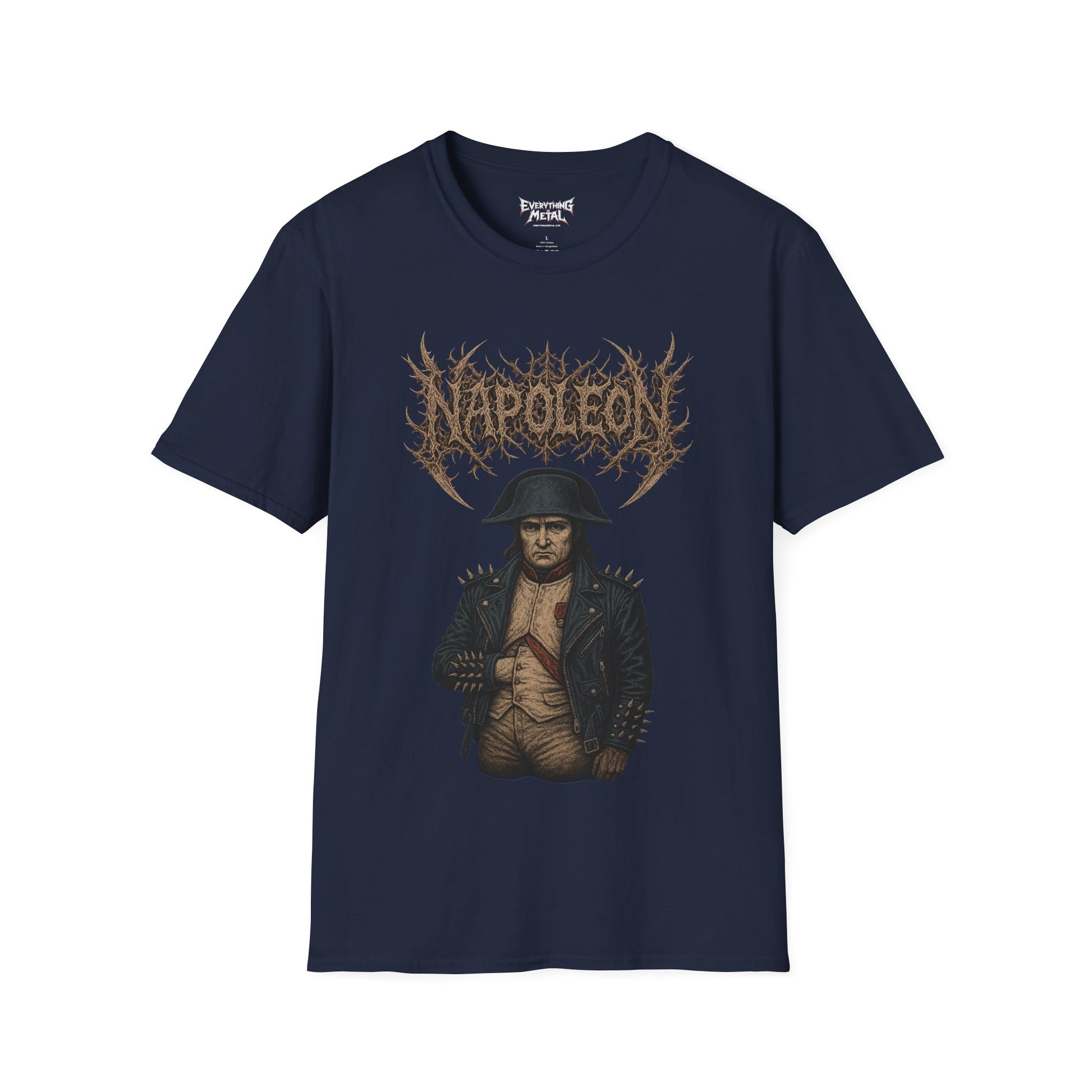 Conquer fashion history with this brutal Napoleon Metal Tee — a darkly hilarious mashup of battlefield glory and black metal attitude. Featuring Napoleon decked out in a spiked leather jacket and scowl, this shirt brings total war to your wardrobe. Perfect for metalheads, history buffs, and anyone ready to rule in style. ⚔️🖤