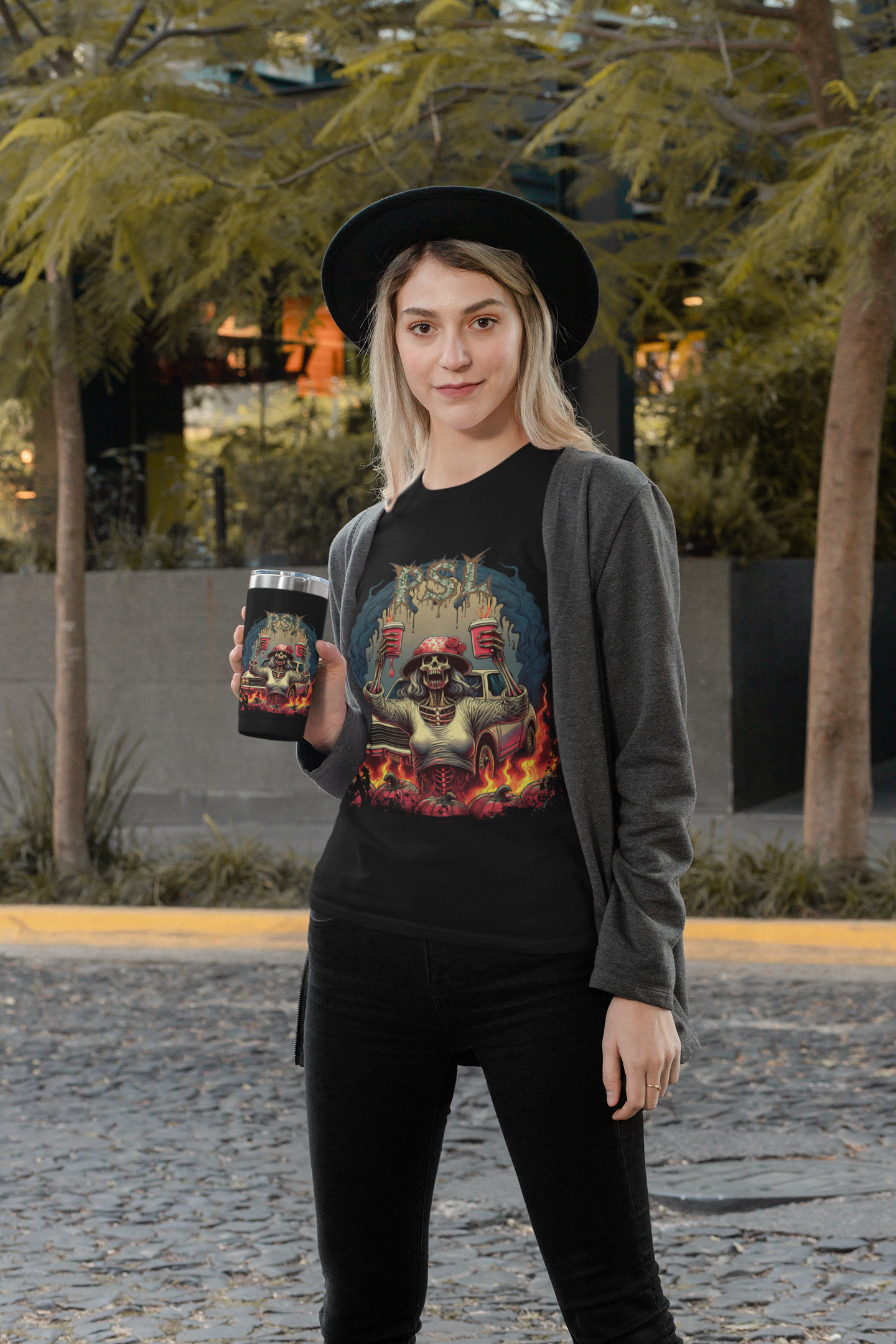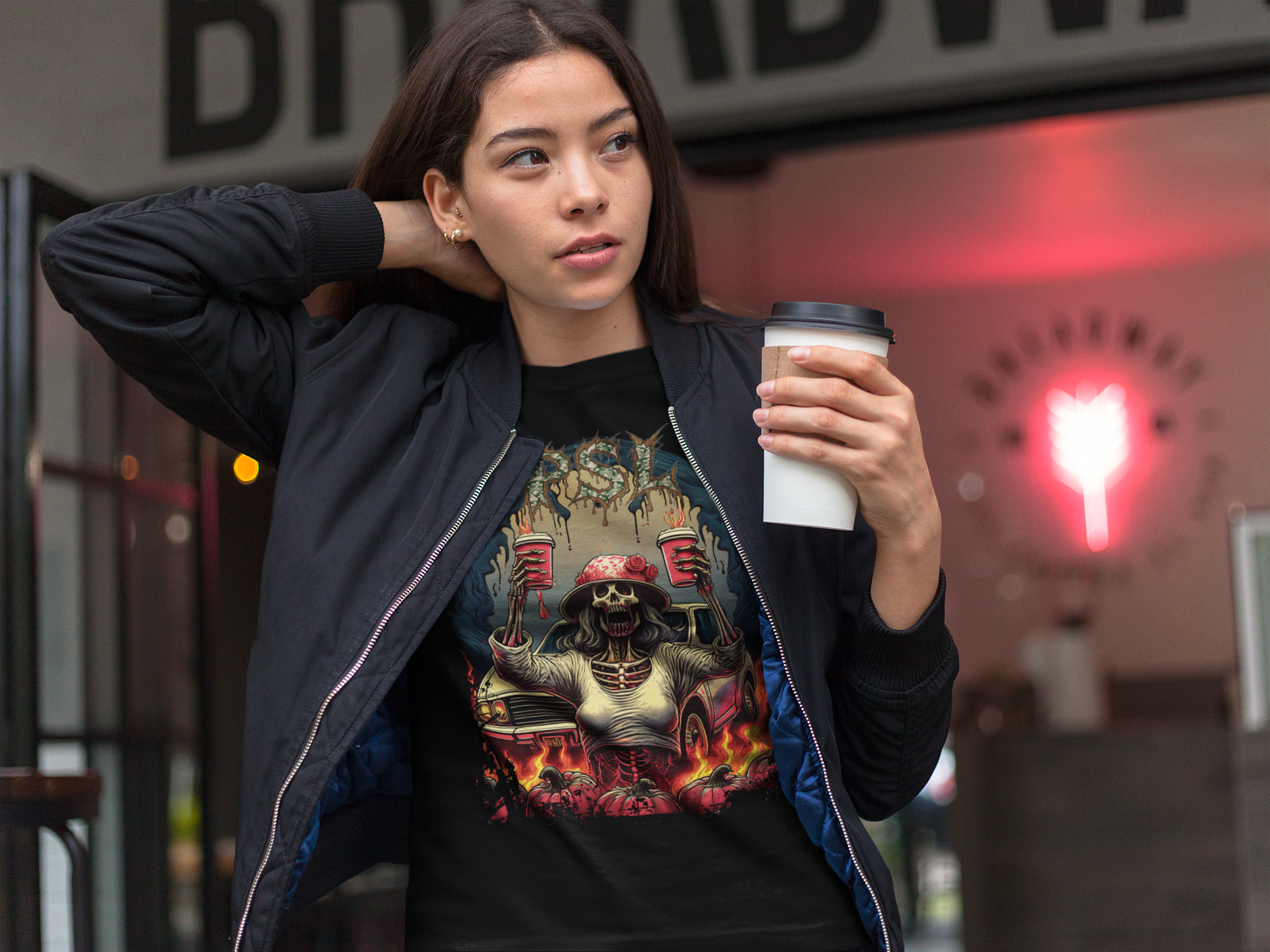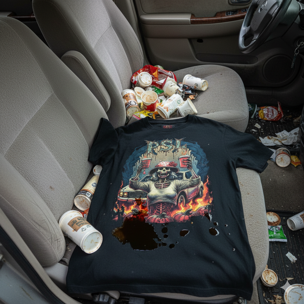 It's that time of year when baggy sweater wearing and wide brimmed hat sporting Karen's (ok...everyone else, too) everywhere unite for their favorite activity of the holidays: PSL!! No fall festival season is complete without lines of white SUVs lining up for miles down the road waiting to get a chance to grab a souvenir then head right back around and get in line again. Let this shirt show you are a true fan. Pair it with a Donut shirt to complete the vibe.
