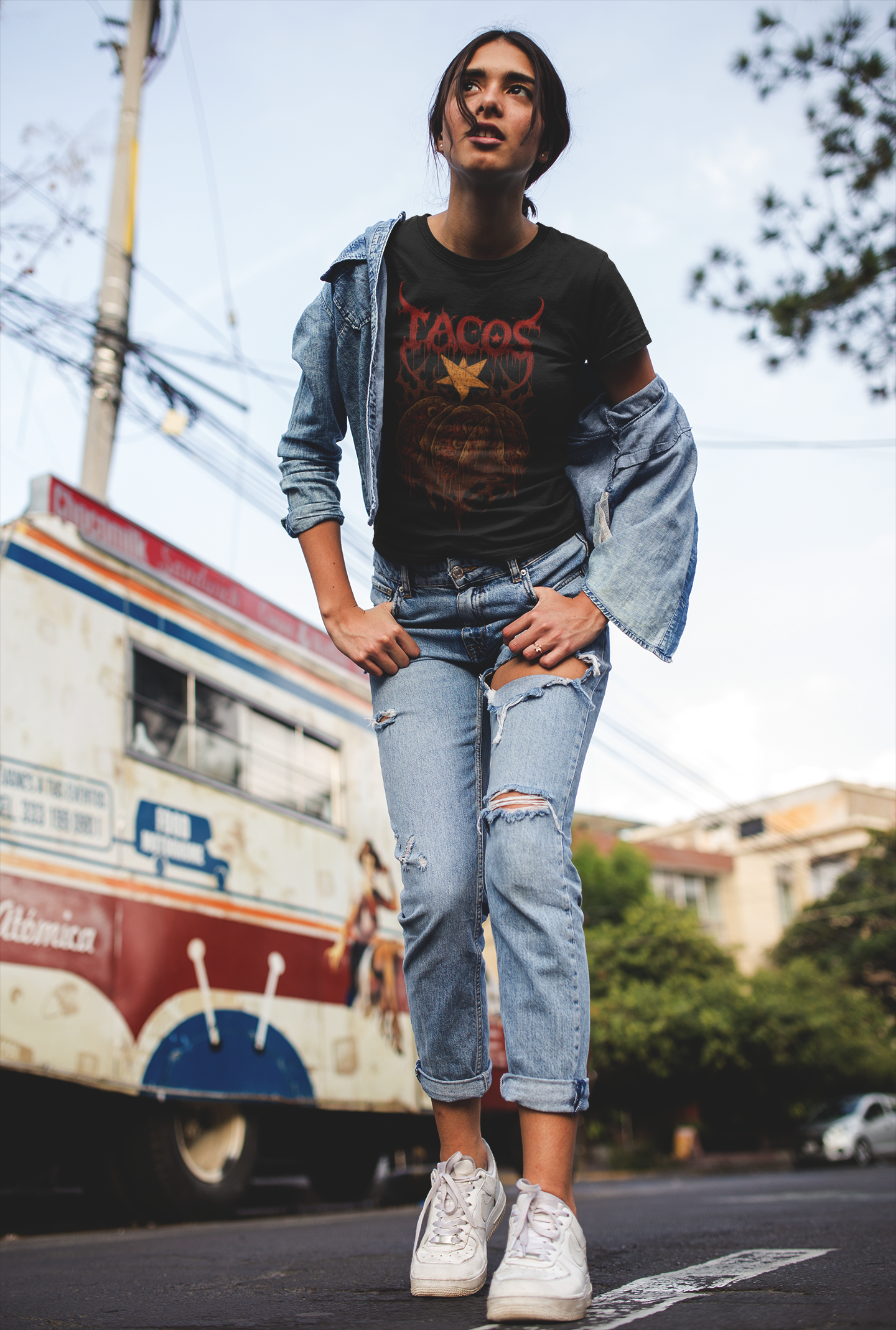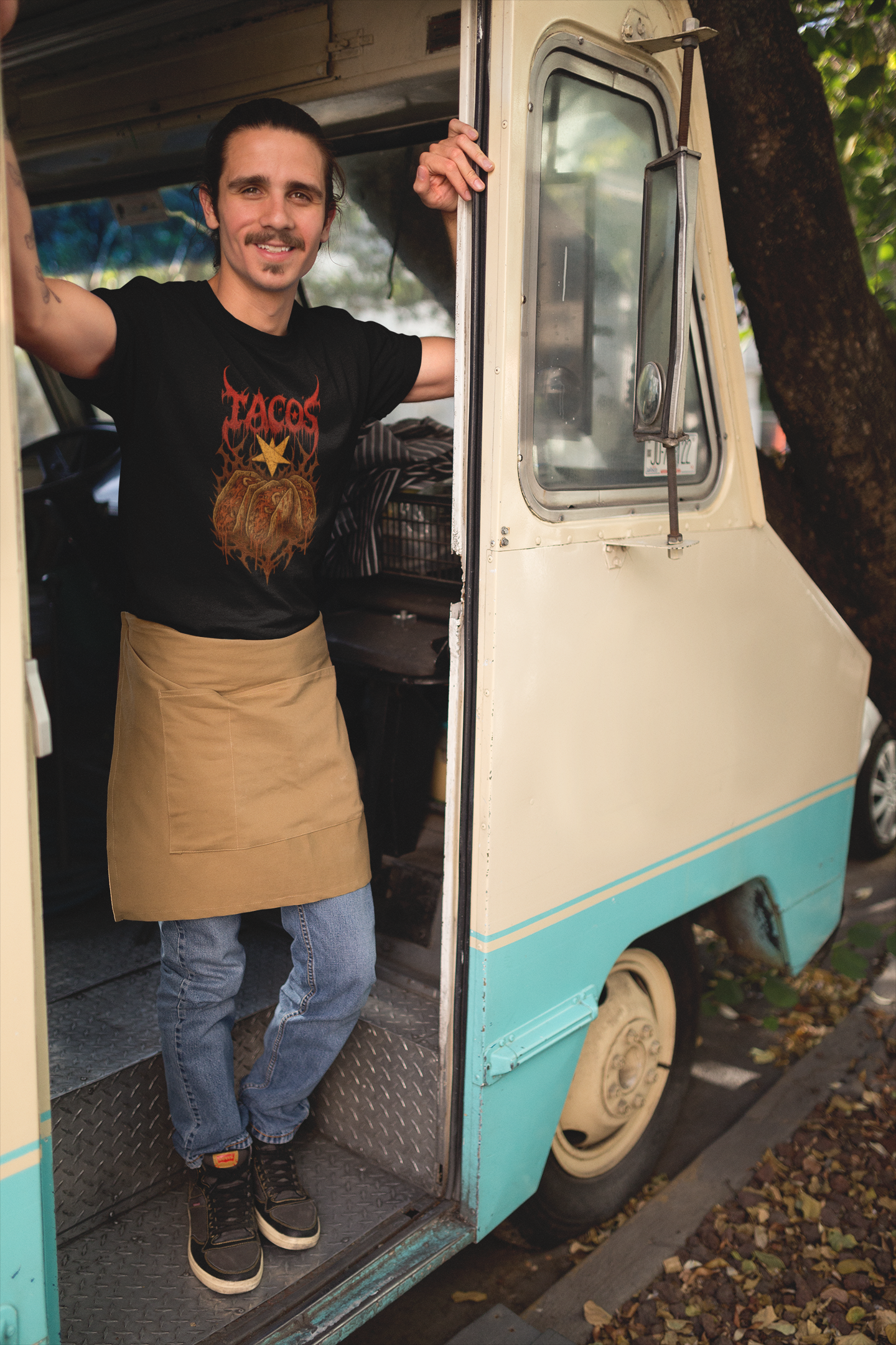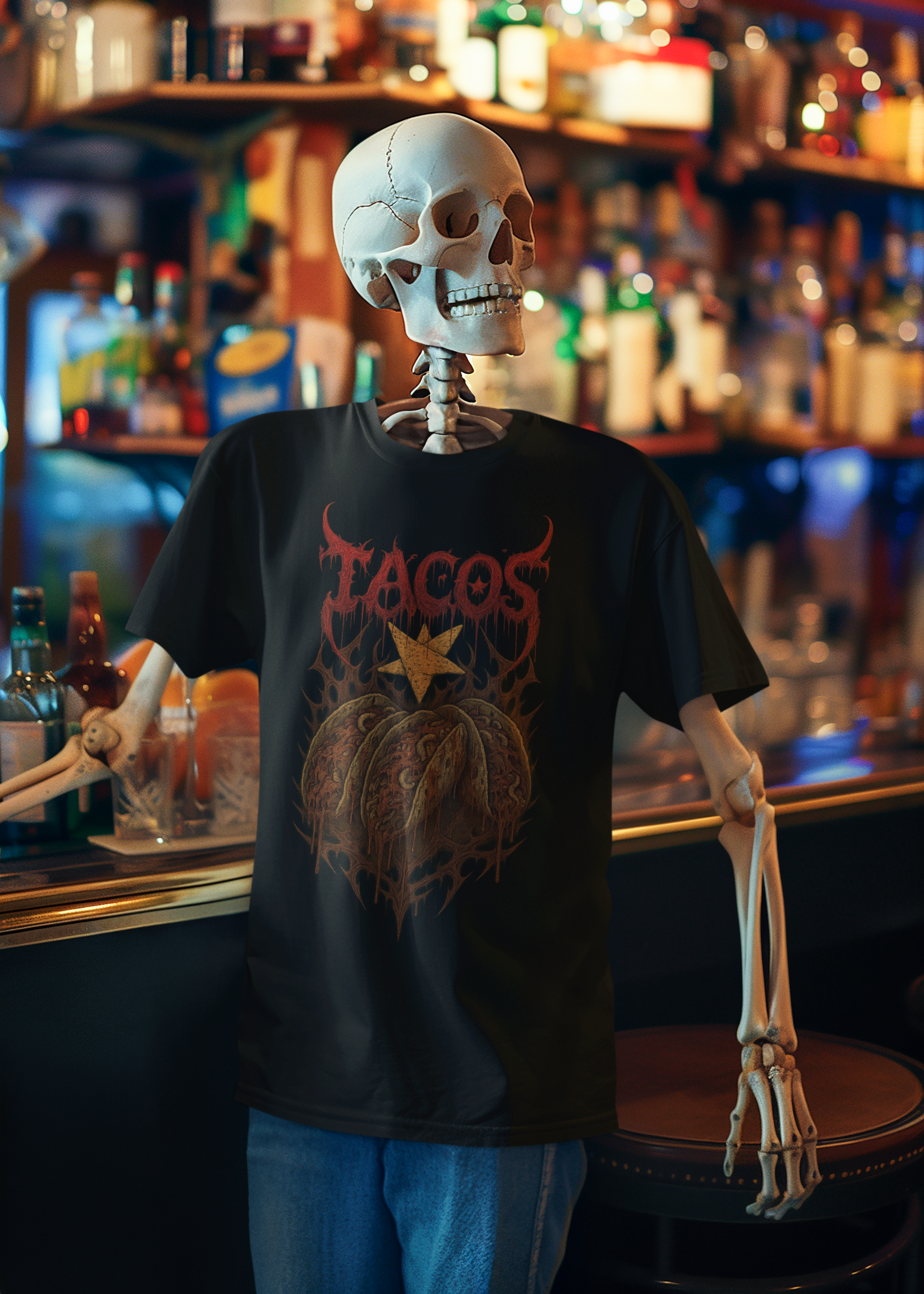 Get ready to thrash your taste buds with this brutal parody tee! Featuring tacos reimagined in the savage style of a heavy metal band shirt, this design pairs jagged, bone-crushing fonts with fierce artwork that makes your favorite street food look downright diabolical. Equal parts tasty and terrifying, it’s the perfect mashup for metalheads who worship riffs as much as they worship tacos. Wear it to the pit, the food truck, the taquería, or just everywhere—this shirt is guaranteed to serve up face-melting flavor and headbanging hunger.