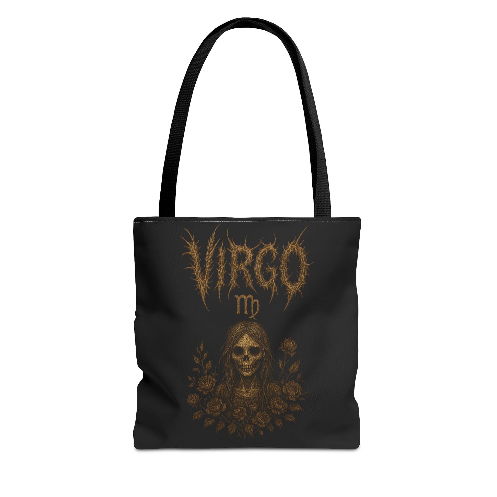 Where precision meets darkness. This Virgo-inspired tote bag features an intricate death-metal band–style design, blending celestial geometry, decayed florals, and the Virgo sigil in brutal gothic detail. Perfect for organized chaos — carry your essentials with grim perfection. Made from durable fabric built to endure every ritual, errand, or apocalypse.